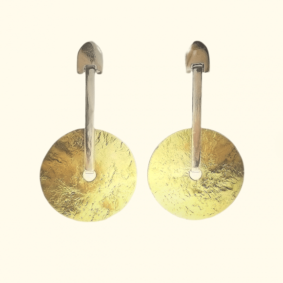 Aperçu Parure boucles d'oreilles collection Disques en argent et or jaune. Aperçu Bague disque en or et argent Aperçu Pendentif disque en or et argent
