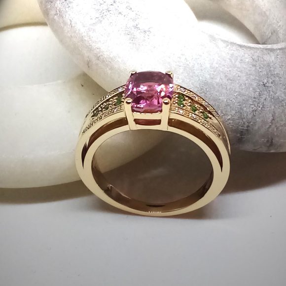Bague en argent sertie de Citrines et Oxydes de zirconium